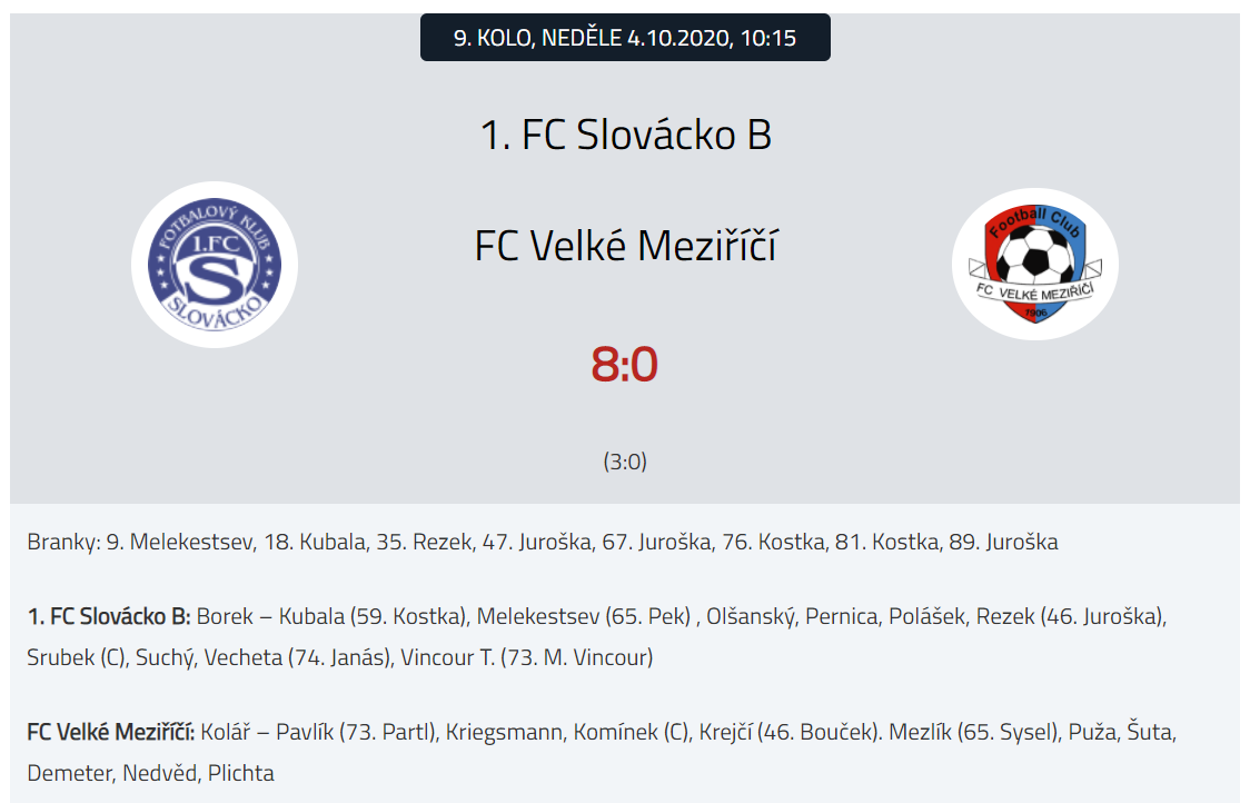 Hodnocení trenéra Jana Šimáčka: To co nás zdobilo prvních devět kol, a to pevná obrana bez taktických a individuálních chyb, tak dnes to byl pravý opak a během jednoho zápasu jsme dostali skoro stejný počet gólů, jako ve všech předešlých zápasech. Soupeři jsme to dnes hodně ulehčili. Klobouk dolů před jejich efektivitou, protože dali gól snad ze všeho. Zato my se venku trápíme a nedat pět zápasů za sebou ani jednu branku taky hovoří za vše. My měli velikou šanci za stavu 2:0, jenže jsme nedali a de facto z protiútoku jsme dostali na 3:0, tam jsme se mohli dostat zpět do zápasu. V kabině o poločase jsme si řekli, že musíme hrát poctivě zezadu a zkusit dát gól. Vše bylo zbytečný, protože ve 47. minutě dostaneme na 4:0, pak už byli hráči psychicky dole a bylo jen otázkou kolik gólů dostaneme. Kluci se dnes přesvědčili, že bez kvalitního tréninkového procesu nemáme s tímto soupeřem šanci. Po dvou vyhraných zápasech přišla pořádná facka, která nás vrátila zpět do reality.