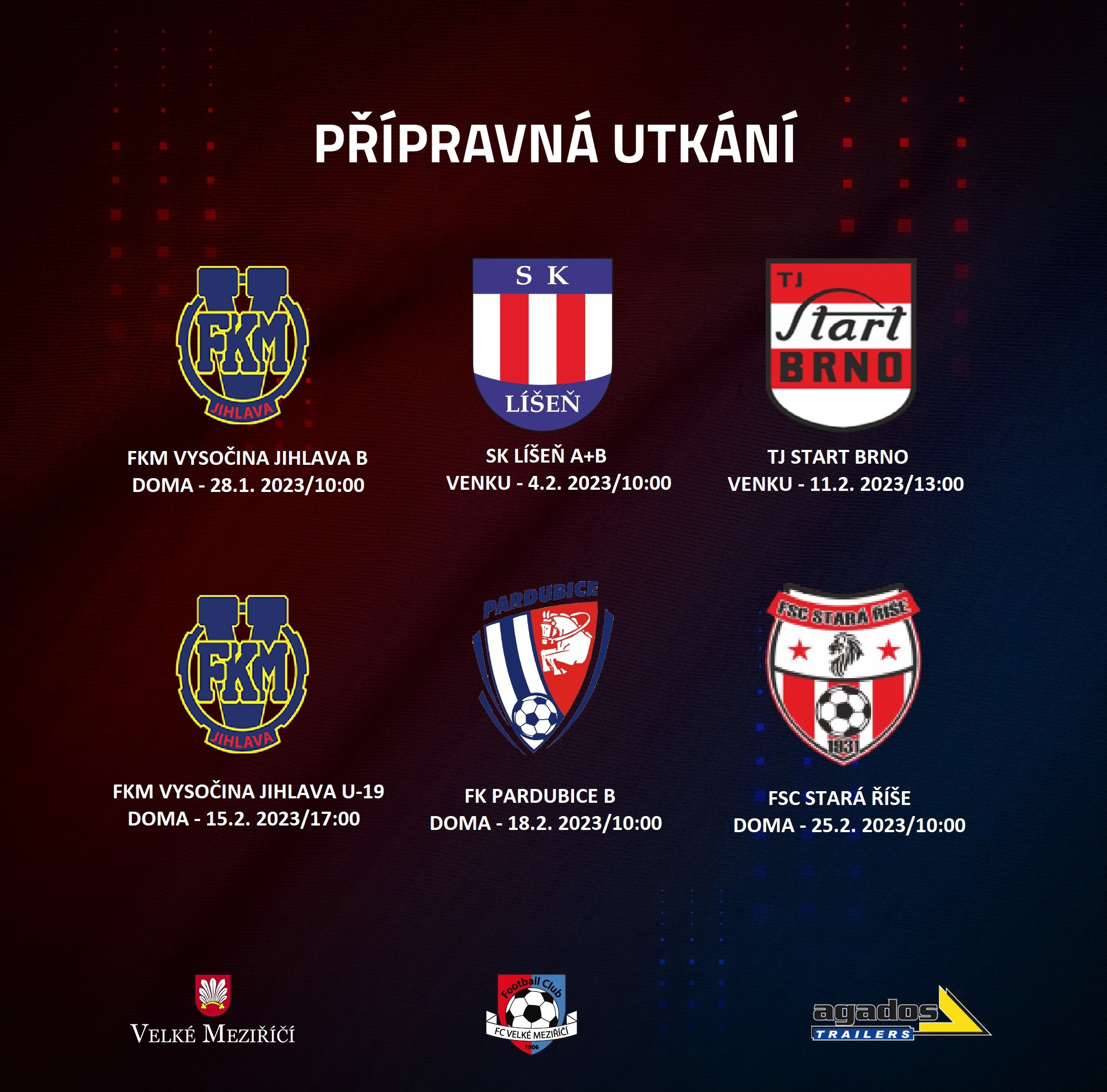 První přípravný zápas čeká na náš tým v závěru ledna, kdy vyzveme béčko Jihlavy, poté bude následovat kombinovaný tým Líšně, Start Brno, Jihlava U19, Pardubice B a generálku odehrajeme se Starou Říší.