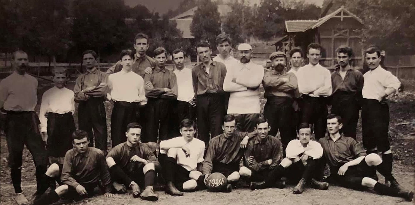 Naši fotbalisté dne 9. září 1906, kdy vrcholily přípravy před prvním meziklubovým duelem s Moravskou Slavií Brno.
